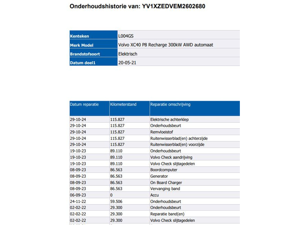 - Onderhoudsboekje aanwezig?