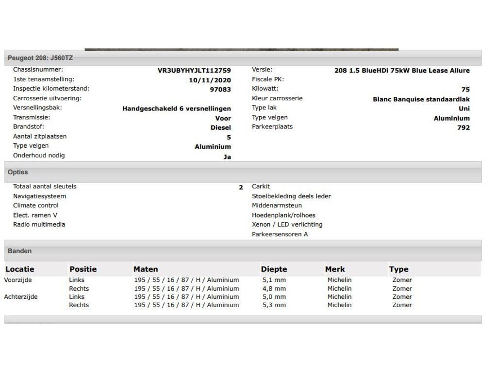 Het kan echter voorkomen dat uit de automatische voertuiginformatie een optie of accessoire naar voren komt die helaas toch niet op de auto aanwezig is.
