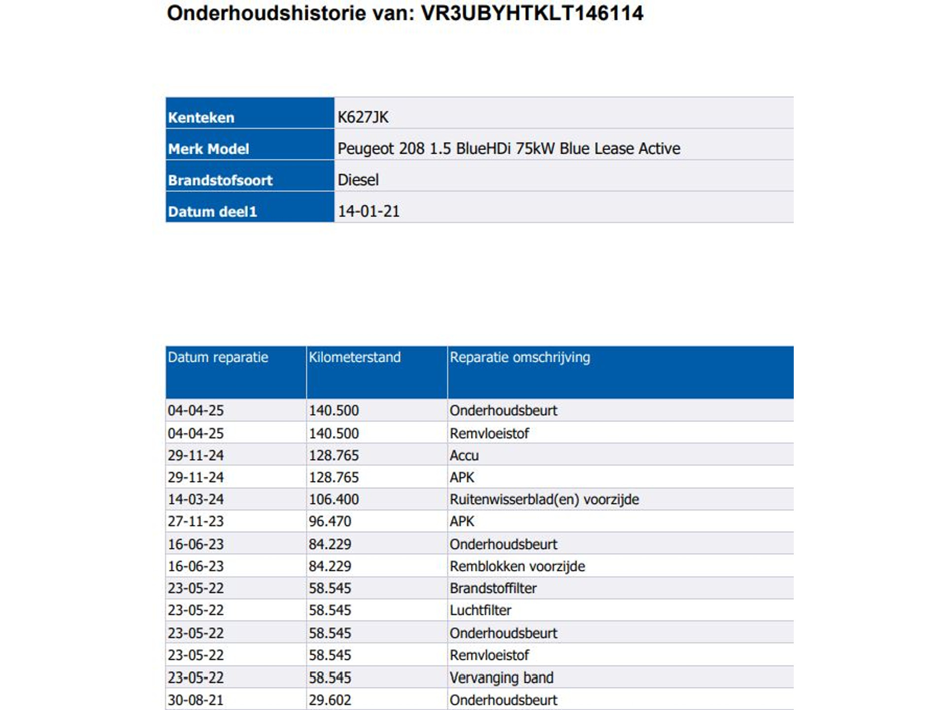 - Onderhoudsboekje aanwezig?