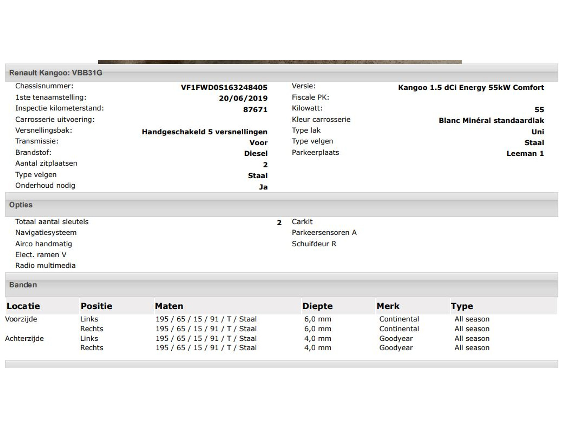 Het kan echter voorkomen dat uit de automatische voertuiginformatie een optie of accessoire naar voren komt die helaas toch niet op de auto aanwezig is.