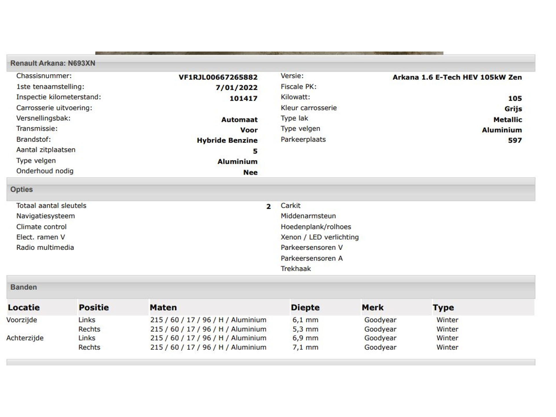 Het kan echter voorkomen dat uit de automatische voertuiginformatie een optie of accessoire naar voren komt die helaas toch niet op de auto aanwezig is.