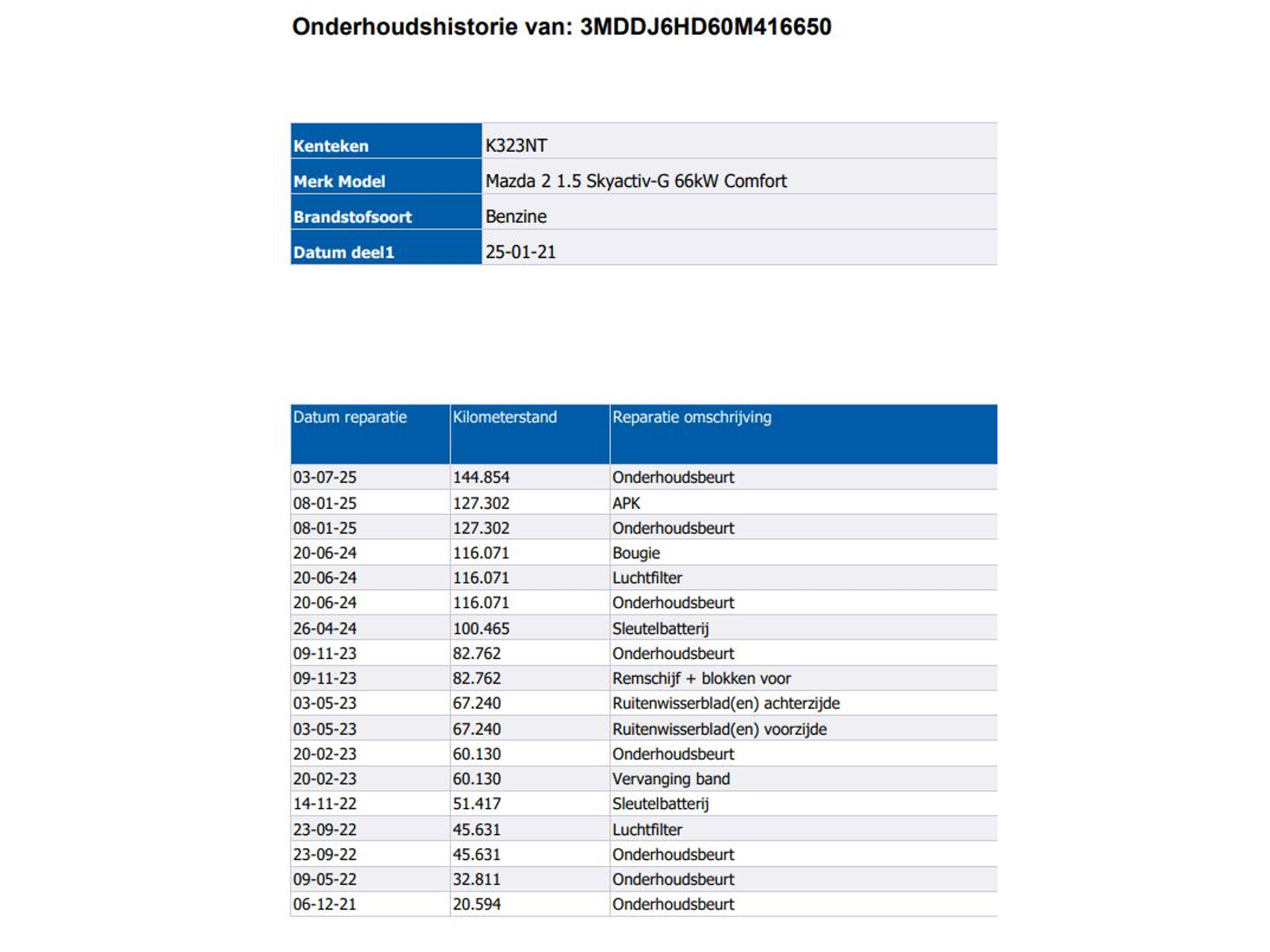 - Onderhoudsboekje aanwezig?