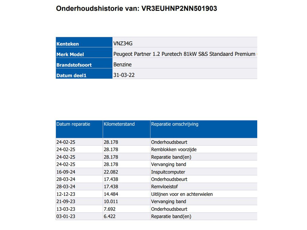 - Onderhoudsboekje aanwezig?
