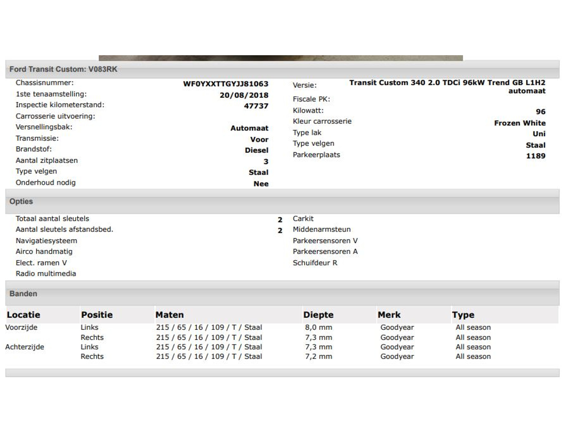 Het kan echter voorkomen dat uit de automatische voertuiginformatie een optie of accessoire naar voren komt die helaas toch niet op de auto aanwezig is.