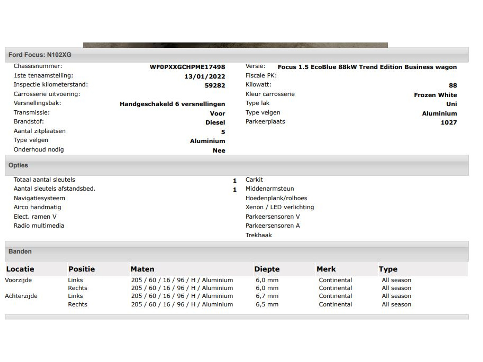 Het kan echter voorkomen dat uit de automatische voertuiginformatie een optie of accessoire naar voren komt die helaas toch niet op de auto aanwezig is.