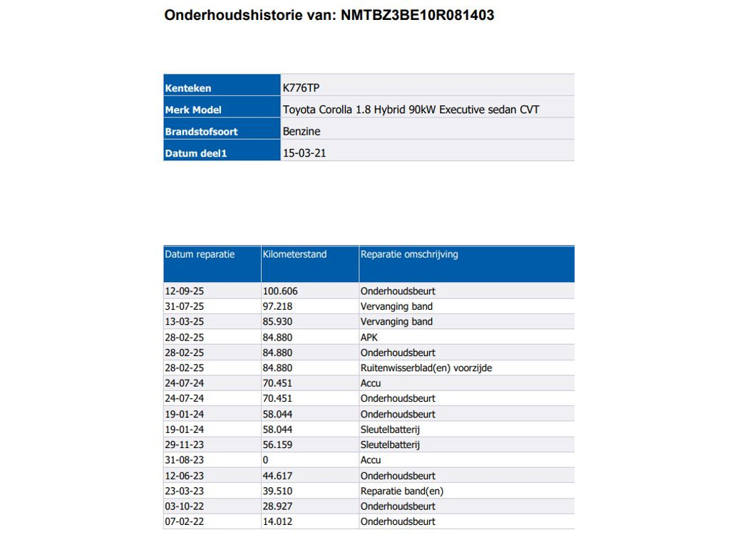 - Onderhoudsboekje aanwezig?