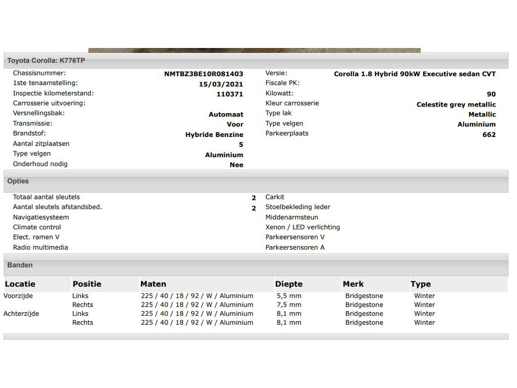 Het kan echter voorkomen dat uit de automatische voertuiginformatie een optie of accessoire naar voren komt die helaas toch niet op de auto aanwezig is.